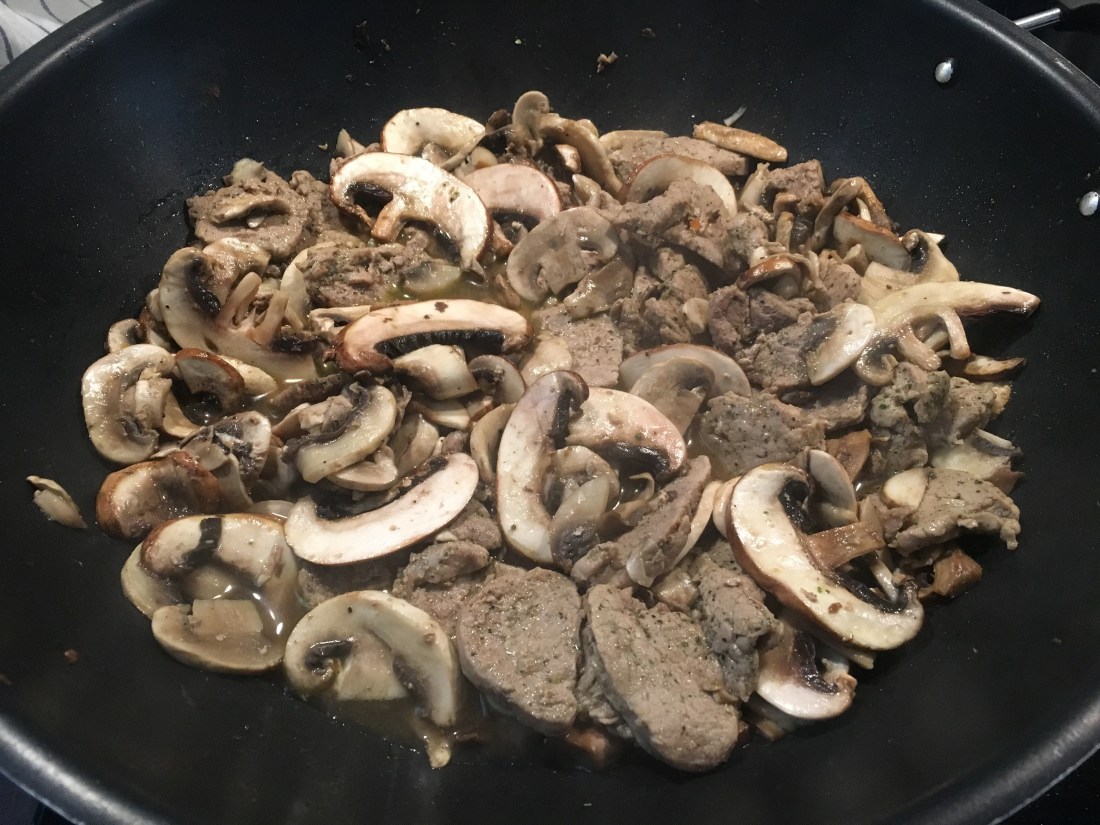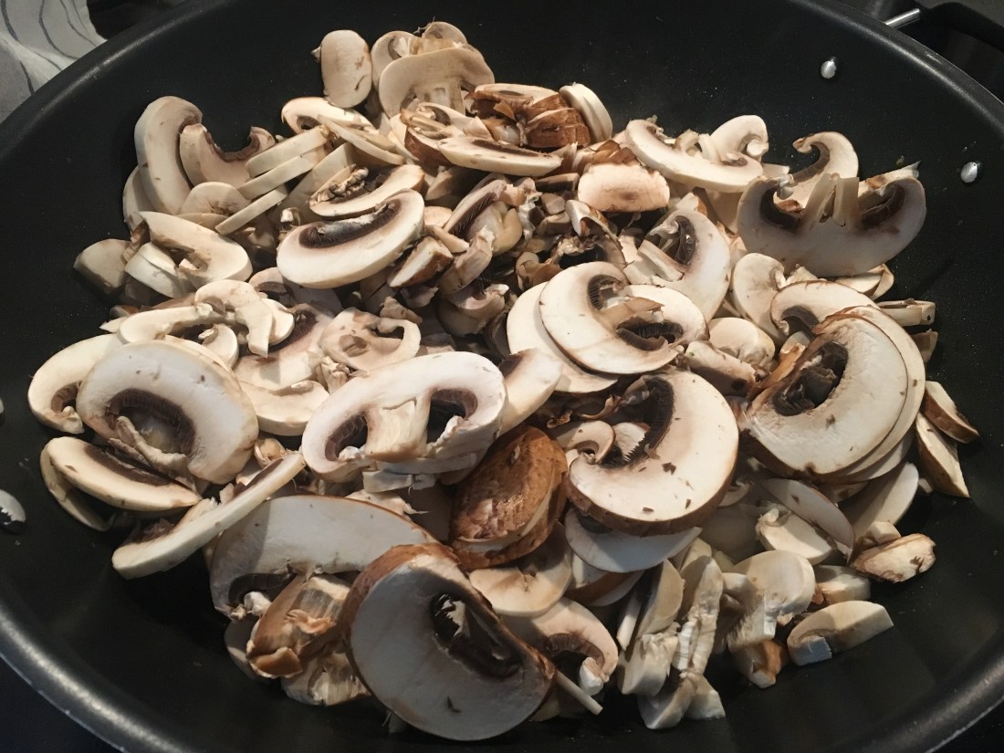 Pustite da se sve skupa kuha dok gljive ne otpuste vodu i naizgled potamne i uvenu. Ovdje nemojte dozvoliti da tekućina ispari prije idućeg koraka – ova tekućina sad je već fini saft i želimo ju sačuvati za dalje.