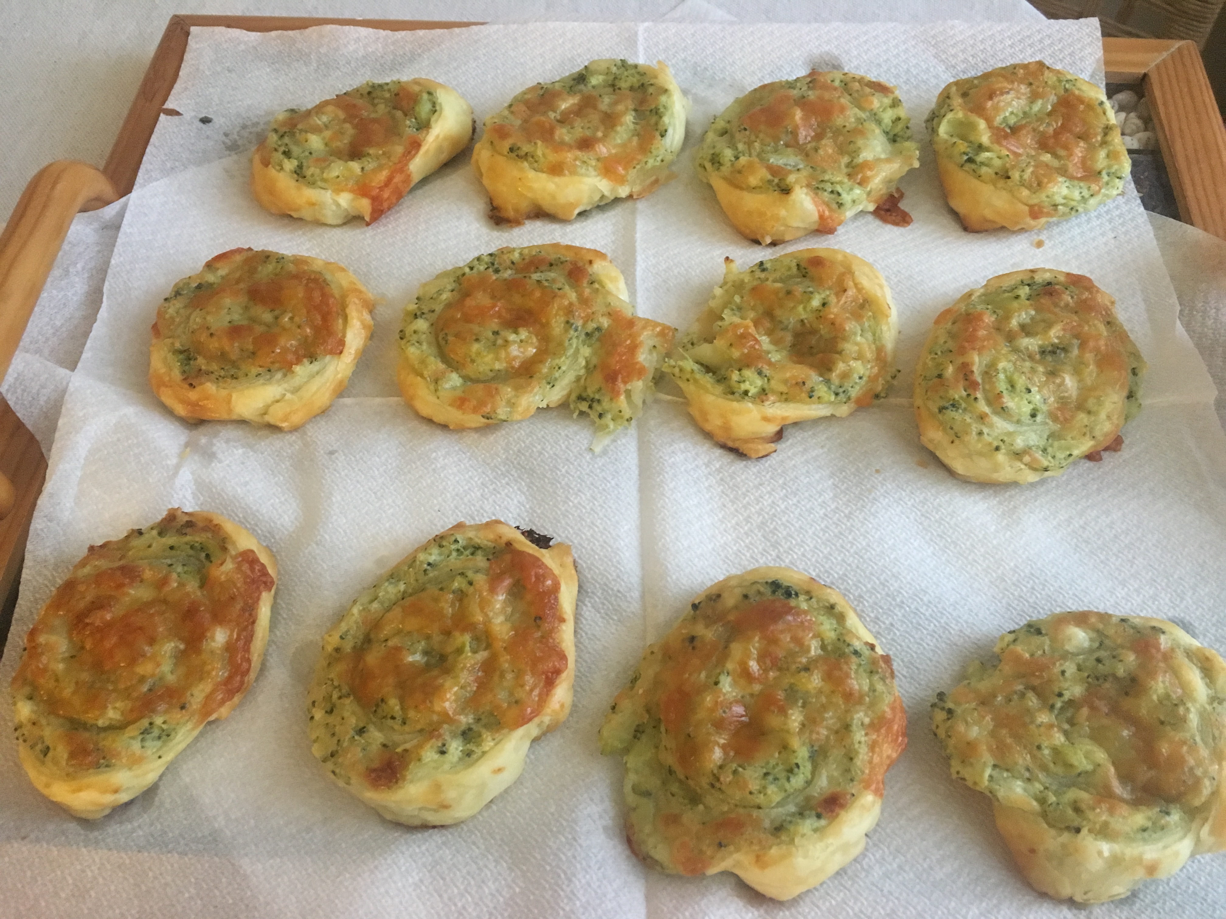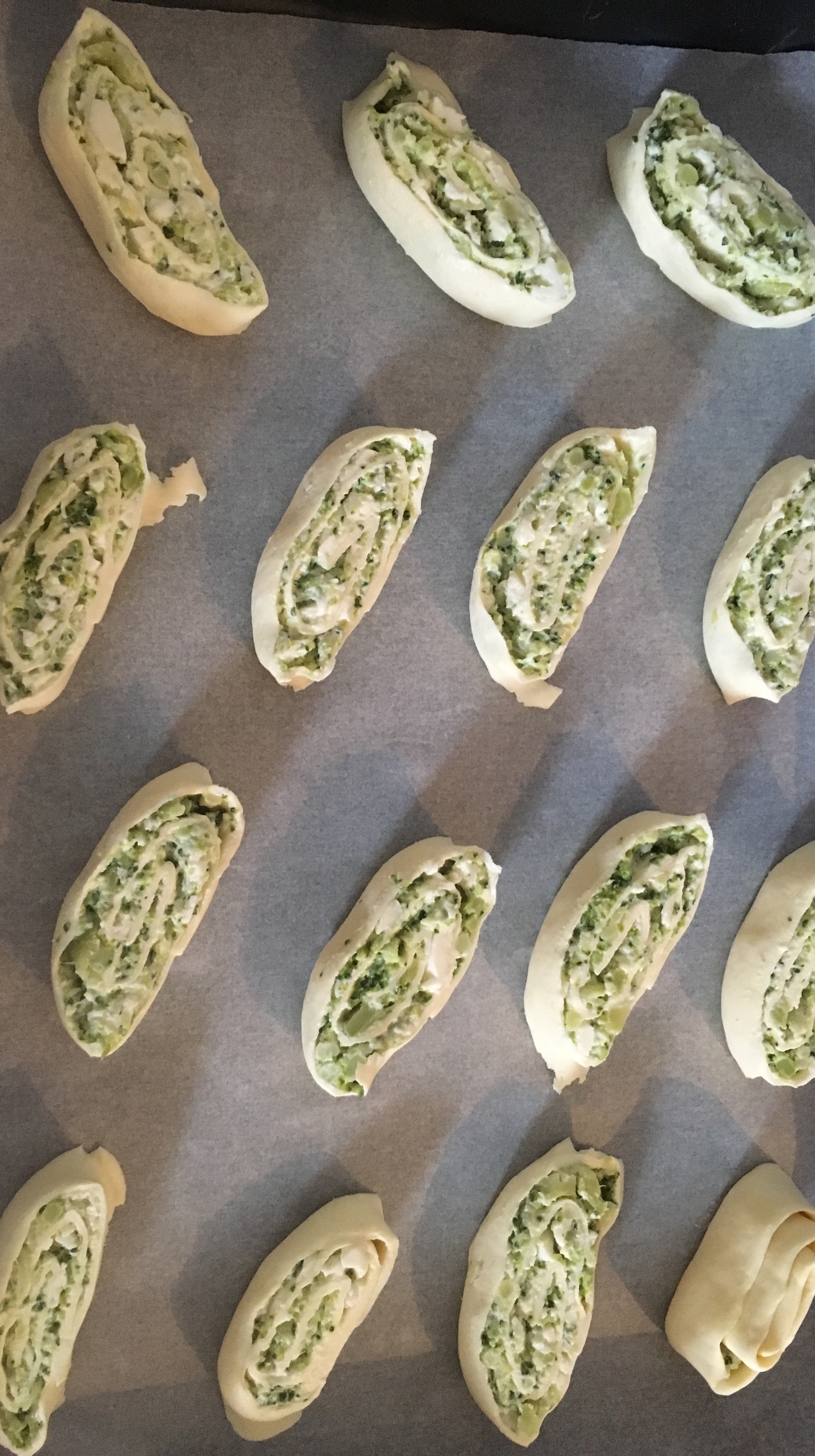 Narežite roladu na šnite 1-2 cm debljine. Poslažite šnitice na pek papir u pleh od pećnice. Sada ih kistom premažite razmućenim jajem, posebno pazeći da ste namazali svo tijesto koje se vidi. Po vrhu posipajte naribani sir.