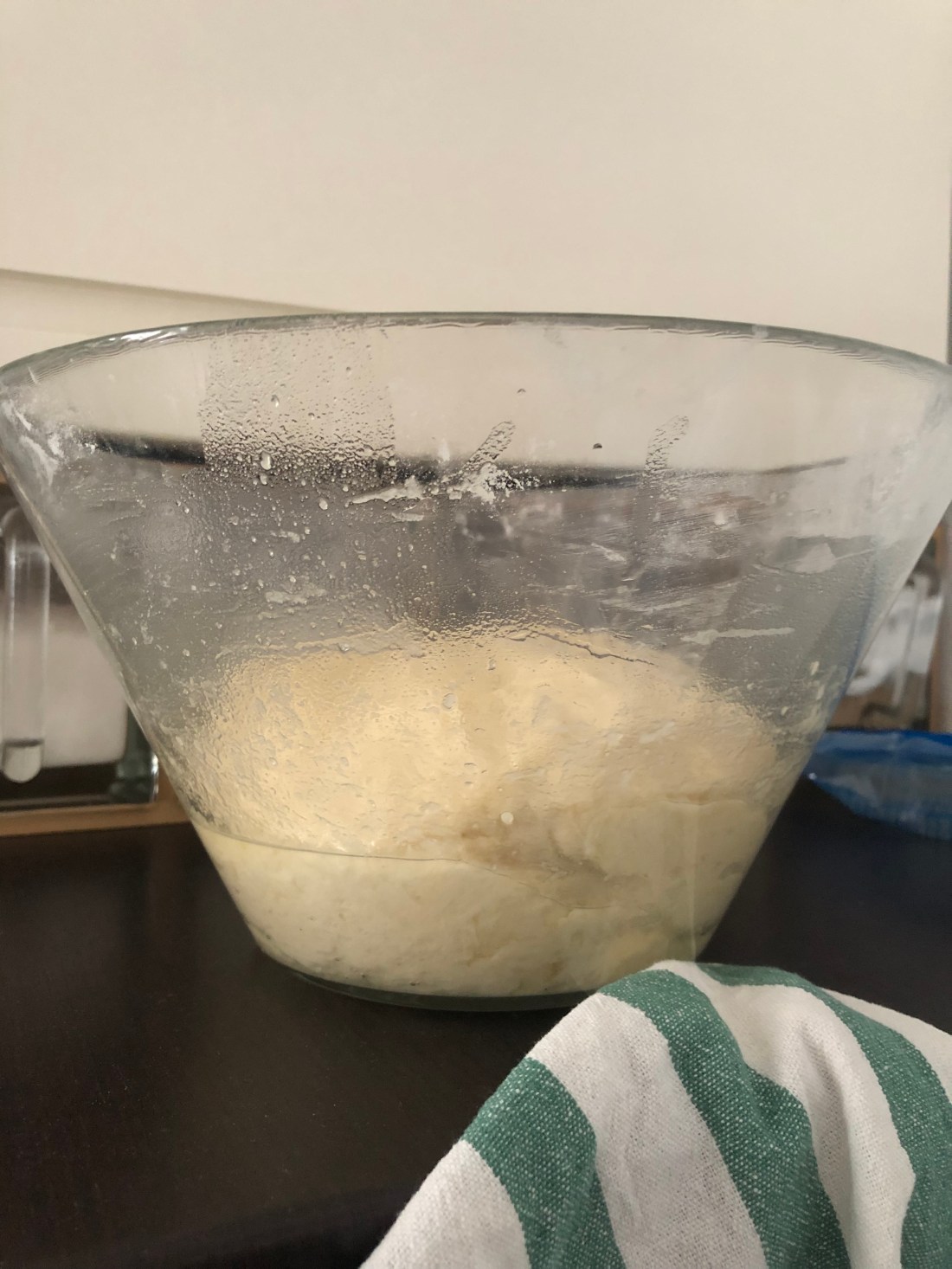 Ako ćete ga koristiti “odmah”, ostavite ga na visokom i toplom mjestu 2 sata. Nemojte ga stavljati na direktne izvore topline (npr. radijator). Ako cete ga koristiti za duze od 2 sata ili sutra, stavite ga u hladnjak pa onda izvadite na toplo 2 sata prije upotrebe. Tijesto se za ta dva sata treba dignuti barem duplo: