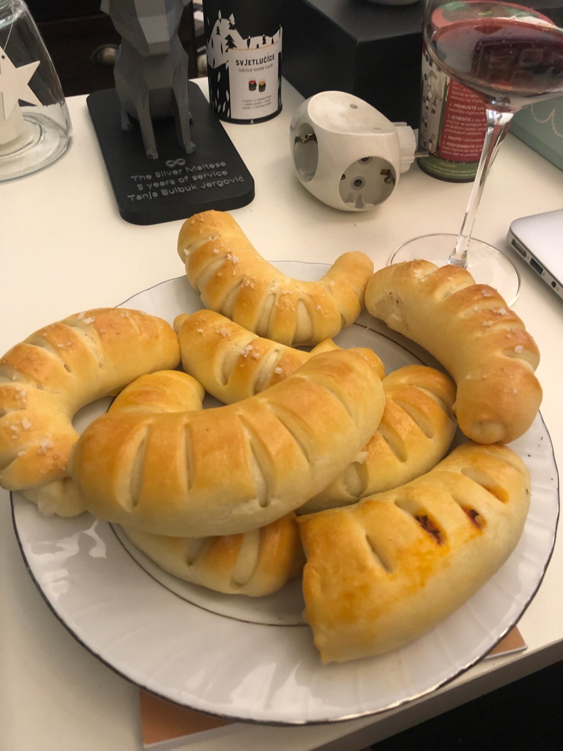 Sad ih poslažite na pek-papir na pleh u kojem ćete ih peći i pustite još pola sata da se dižu. Na kraju ih kistom premažite mjesavinom 1 jaja i malo mlijeka. Posipajte solju ili sezamom ako želite.